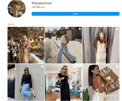 Take #zarawoman on Instagram, for example, it’s filled with everyday creators sharing outfit inspiration featuring Zara pieces. These types of hashtags can reveal potential collaborators already creating shoppable content that aligns with your brand.